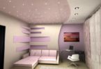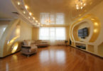 - для обычной квартирной комнаты рекомендовано делать только двухъярусные подвесные потолки из гипсокартона, со встроенным одним рядом лампочек;