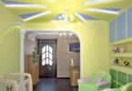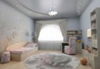 Многоуровневые потолки в детской пестрых раскрасок помогут воплотить в жизнь любую детскую фантазию. Прочный и экологически безопасный гипсокартон не влияет на здоровье ребенка. Из него можно сконструировать различную форму потолка (солнце, радуга), а украсить помогут яркие цвета красок (розовый, салатовый, голубой). Добавит игривости светодиодные лампочки цветной подсветки.