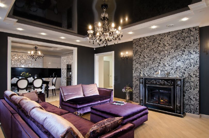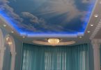 На выбор цвета оказывает влияние общее стилевое направление, в котором выполнен весь интерьер. Лучше не оформлять потолок и стены в одинаковом цвете. В таком случае все поверхности попросту сольются, и все будет смотреться не очень гармонично. Матовое полотно лучше всего выбирать пастельных оттенков. Это сделает поверхность более мягкой и легкой для восприятия. Глянцевый – может быть и ярких цветов. Хорошо если его цвет перекликается с различными элементами в интерьере.