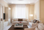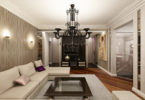 Классика всегда в моде, поэтому много семей предпочитают видеть свой зал именно в этом стиле. Дерево, камень и текстиль – основные составляющие данного направления.