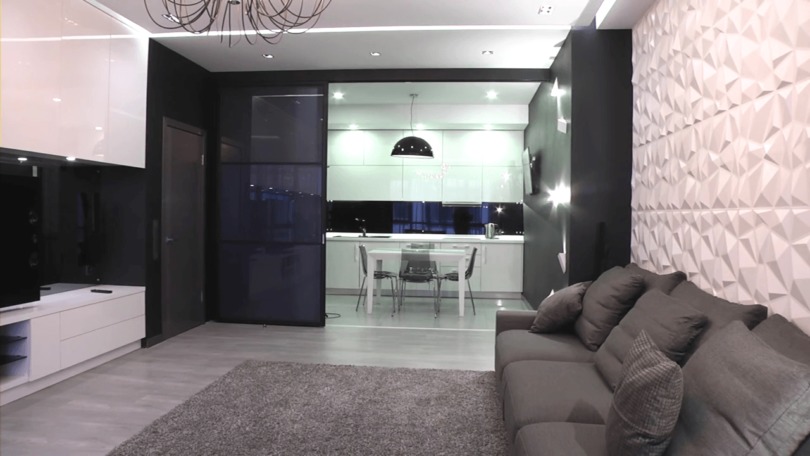 Желающим видеть свой зал в строгих и лаконичных линиях, значит, выполнить его в стиле хай-тек. Однотонные цвета, никаких разбросанных лишних предметов и декора. Пластиковая мебель и металлические фрагменты на ней, все это доказательства хай-тека.