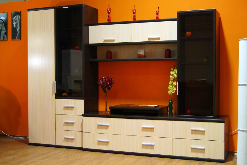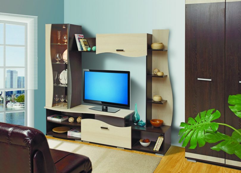 Ультрамодная модульная стенка горка для гостиной сегодня очень популярна. Каждый модуль имеет свою форму и определенную функцию. Но в целом они представляют собой единую композицию. В состав модульной стенки горки в гостиную входят шкаф-витрина и шкаф для посуды, бар и платяной шкаф, полочки под видеоаппаратуру и угловые элементы.