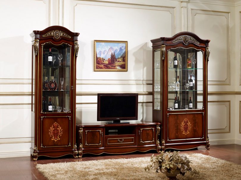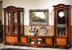 Особенностью стенки горки в гостиную является компактный шкаф из дорогой натуральной древесины, выполненный в классическом стиле дизайна. Частенько такой шкафчик является маленьким шедевром, так как украшен изысканной резьбой и декоративными элементами. Стеклянные дверки и полочки являются неизменной классикой этого жанра. Лучше всего классическая горка впишется в классический стиль или стиль барокко. Данная стенка горка используется чаще всего для хранения изящной хрустальной и фарфоровой посуды и небольших частных коллекций.