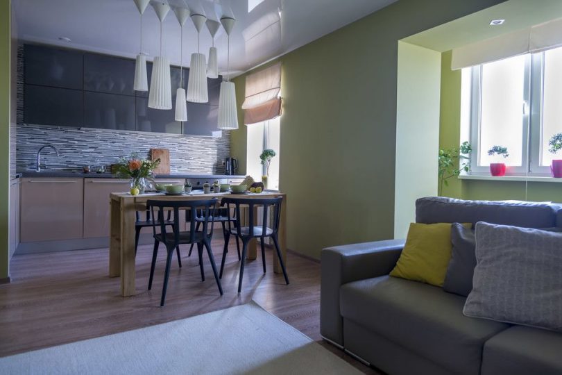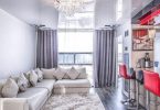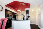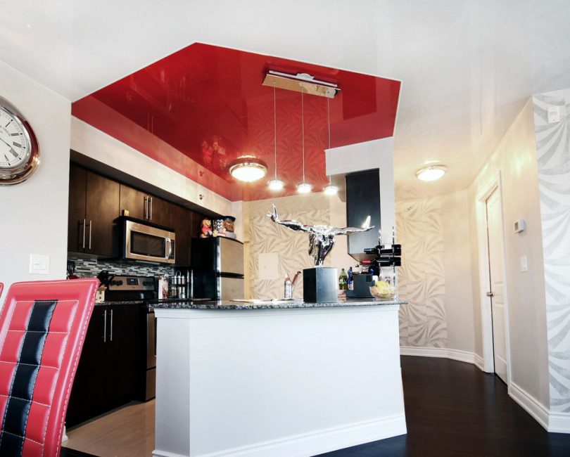 Оригинальный авангардный интерьер требует сочного и насыщенного глянцевого потолка. Необычный и достаточно яркий оттенок сможет на 100 % вписаться в столь экспрессивный стиль.