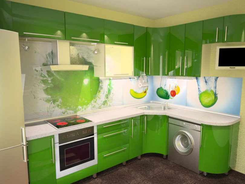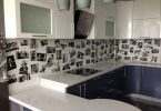 К примеру, если площадь помещения небольшая, лучше остановиться на фартуках светлых тонов с простым неназойливым рисунком как на фото.
