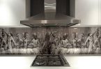 Для тех, кто предпочитает использовать в интерьере натуральные материалы, подойдет пластик с имитацией камня, кирпича или дерева. Плюсом фартуков, имеющих какой-либо рисунок, является то, что загрязнения на них заметны намного меньше. При желании можно установить сверкающие или переливающиеся панели, делающие кухню необыкновенно интересным помещением.