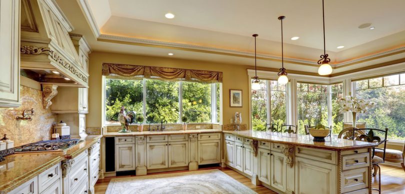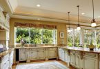 Зачастую частный дом оснащен довольно большими окнами, что может помешать в расположении предметов мебели. Поэтому рекомендуется под окном ставить кухонный стол. Такой вариант позволит уменьшить количество искусственного освещения и улучшить воздухообмен.