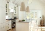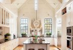 Большая кухня в частном доме будет выглядеть стильно, если ее украсить дополнительными элементами. Одно из дизайнерских решений – это грифельная доска на холодильнике. Кроме того, можно повесить зеркало или даже два (для создания иллюзии бесконечности). Не стоит забывать и о вазах с цветами, скатертях, гардинах. Красивые и одновременно простые элементы декора привнесут некую изюминку в дизайн кухонного помещения.