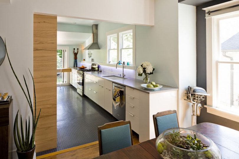 Далеко не в каждом частном доме есть проходная кухня, которая имеет два выхода. Поэтому при ее оформлении нужно учитывать особенности такого помещения. Создавая дизайн, нужно сделать следующее:
