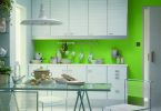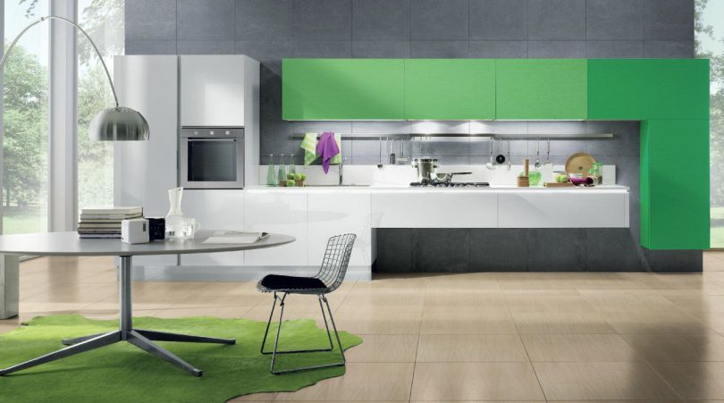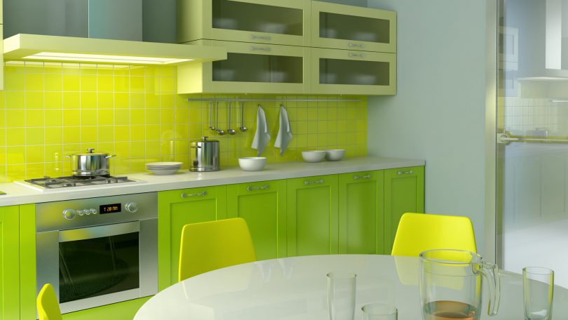 Но если вы хотите сыграть на контрастах — сочетайте зеленый и белый. Придерживайтесь следующего правила: чем ярче основной цвет, тем больше должно быть в комнате белого. Салатовая кухня, например, требует наличие немного белого цвета для гармонии.