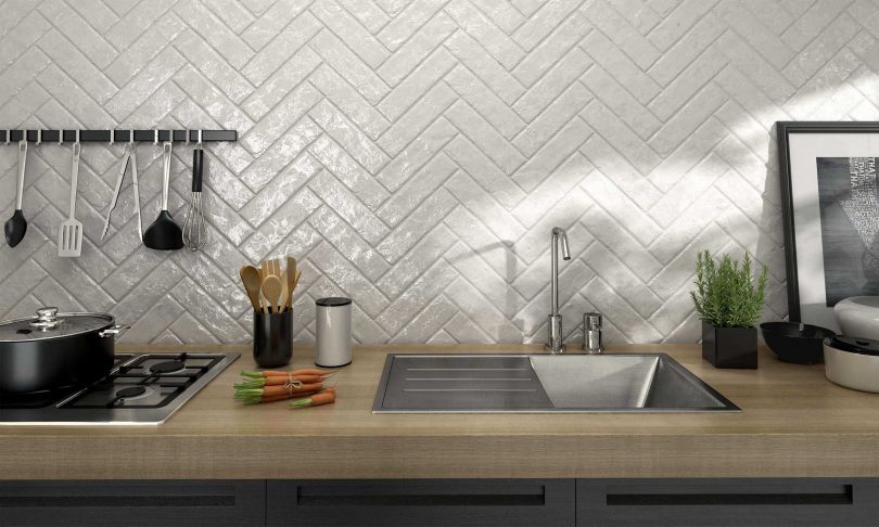 - Эстетичный внешний вид. Сегодня плитка для фартука на кухне радует глаз разнообразием цветов, текстур, фактур и используемых материалов. Но все же самым распространенным вариантом по-прежнему является белая плитка на фартук для классической кухни либо варианты светлых тонов и оттенков.