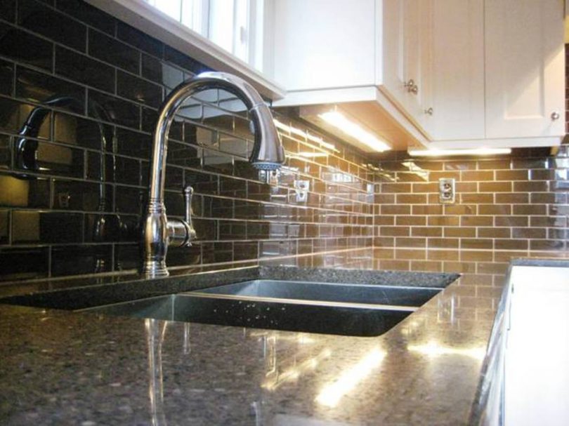 - Кроме того, уход за плиткой с гладкой поверхностью гораздо легче, нежели поддержание внешнего вида рельефных облицовочных материалов. Так, например, сегодня все более широкую популярность приобретает стеклянная плитка для кухни на фартук — практичная, гигиеничная и имеющая оригинальный внешний вид.