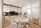 Для различных стилей, используемых для оформления окна на кухне, дизайнеры придумали оригинальные идеи. Так, для прованса лучшее решение занавеси с подхватом. В классическом интерьере выгодно смотрятся прозрачные занавеси, ниспадающие до пола.