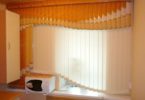Идеальный вариант – жалюзи. Подберите вертикальную модель из ткани и установите их так, чтобы они сходились в месте соединения рамы окна и двери.