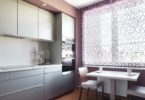 Для маленькой кухни идеальны римские шторы, внешне напоминающие рулонные. Их можно регулировать в зависимости от настроения и потребностей.
