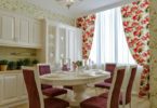 - Занавески с флористическим узором для кухни прованс. Шторы с крупным узором могут перегрузить интерьер и поэтому к их выбору нужно подходить серьёзно. Кроме того, чрезмерно пёстрый узор не подходит провансу. Хорошо впишется в кухню этого стиля натуральное полотно с флористическим узором, допустим букет на однотонном, неярком фоне.