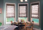 Высоким окнам подойдёт римский или японский вариант. На маленьких окнах хорошо выглядят шторы до подоконника.