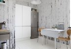 Относительно недавно стала набирать популярность отделка кухни пластиковыми панелями и деревянной вагонкой. Основным преимуществом изделий можно назвать то, что такие материалы прекрасно скрывают все неровности стен, так как крепятся непосредственно на каркас. Отличительной особенностью пластиковых панелей является легкость монтажа. При попадании грязи на их поверхность можно пользоваться как обычной водой, так и специальными средствами для удаления жира и грязи. Вагонка изготавливается из различных пород дерева, поэтому несет не только эстетическую, но и практическую функцию.