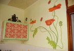 Самым распространенным материалом для отделки стен кухни считается водоэмульсионная краска. И это касается не только кухонных стен, но и ремонта всего помещения. Подобный отделочный материал практичен, с ним легко работать. Краска имеет широчайшую палитру цветов на любой выбор. Дополнительным плюсом здесь можно назвать и то, что в водоэмульсионную краску не входят вредные и токсичные вещества. В помещении можно будет свободно находиться, не опасаясь за наличие вредных веществ в воздухе. Покрытие быстро сохнет, поэтому нанесение слоев возможно с перерывом в 1-2 часа. Производители советуют пользоваться именно матовыми вариантами, так как они способны скрыть все недостатки неровных и шероховатых поверхностей, чего нельзя сказать о глянцевых красках.