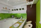 - Идея покрыть плиткой все стены будет неразумной. Достаточно просто выделить рабочую зону, а остальные стены отделать другим материалом.