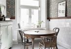 Не менее распространенный вариант – это обои, которые до недавнего времени считались одним из худших. Еще 15 лет назад обои в основном производились из бумаги, поэтому считалось, что клеить их на кухне не столь разумно, так как они пачкаются, отклеиваются от стен из-за высоких температур и влажности, да и в целом быстро теряют свой первозданный вид. Вследствие этого ремонт стен на кухне требовался чуть ли ни ежегодно, а это весьма затратно и трудоемко.