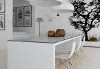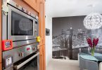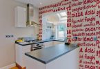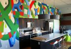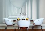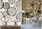 Если окинуть взором кухню, то станет ясно, что на стену, которая соприкасается с мебелью, лучше всего наклеить материал, где есть абстрактные изображения. Более темные тона фотопанно будут хорошо смотреться в помещении, если в нем присутствуют яркие предметы интерьера.