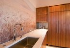 Можно вполне успешно клеить фотообои на кухню возле раковины, поскольку они обладают специальным влагозащитным слоем. Производители при изготовлении данного отделочного материала применяют самые стойкие чернила, которые не боятся воды и температурного перепада.