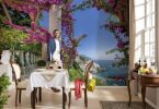 Изображение должно соответствовать пропорциям помещения. Нужно помнить, что мелкий рисунок создает ощущение беспорядка, а слишком крупный – давит на маленькое пространство. Модный и интересный дизайн кухни не получится создать, если использовать 3d фотообои, так как их лучше всего клеить в просторных помещениях. На кухне, которая плохо освещена, будут красиво смотреться светлые фотообои, имеющие теплые тона. На 100 % подойдут рисунки морских или летних пейзажей, пронизанных солнечными лучами.