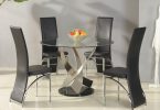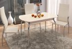 Не обязательно выбирать классический обеденный стол на кухню, можно и поиграть с формами. Производители предлагают интересные формы в виде полукругов, многоугольников.