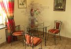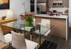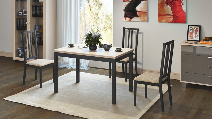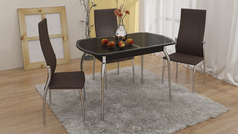 Каждому человеку нужно 60-90 см пространства за столом, чтобы с комфортом устроиться и расслабиться за беседой и едой. Используя расчетную формулу, получится, что семье из 3 человек (и 2 гостей) нужен стол с длинной стороной столешницы – 120 см и с короткой – в 60. Его можно придвинуть к стене, а если поставить в центр кухни, то появится еще одно свободное место.