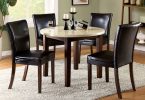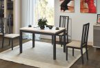- Играя на контрасте, подберите стол более темного или светлого цвета, чем гарнитур. Контраст может быть не только с кухонным фасадом: возьмите белый стол на кухню и подберите к нему темно-коричневые или черные стулья.