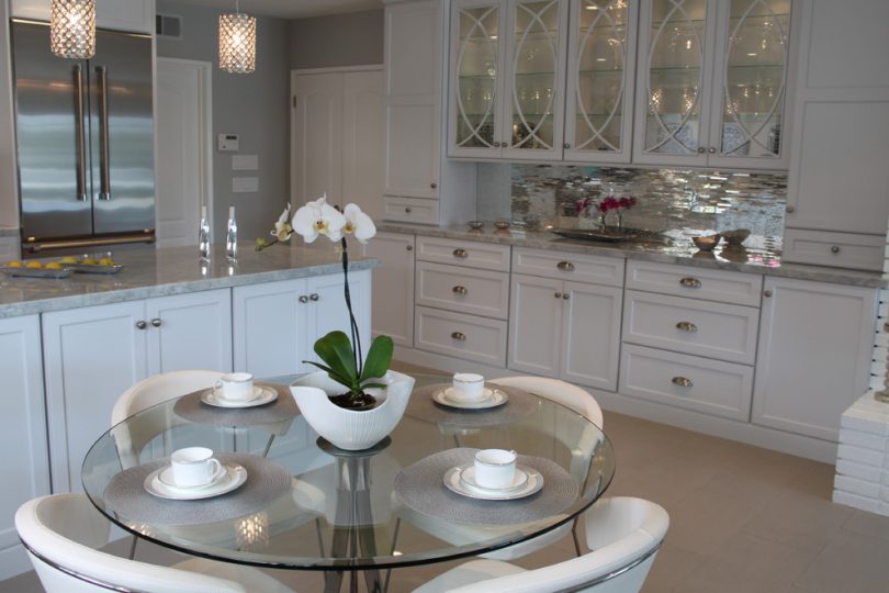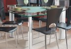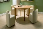 В небольшой кухне найти место для мебели – проблема. Раздвижной столик у стены сэкономит дефицитные сантиметры в маленьких помещениях, а придут гости – его можно будет раздвинуть. За компактным круглым столиком в углу кухни, уютно отобедает маленькая семья из 1 – 2 человек. Прозрачный пластик или стекло сделает кухню визуально просторнее.