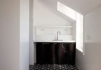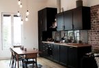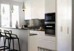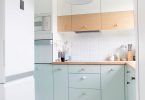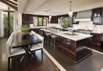 - Комбинирования отделочных материалов дает возможность зонировать кухонное помещение, выделяя рабочую область и место для отдыха разными цветами;