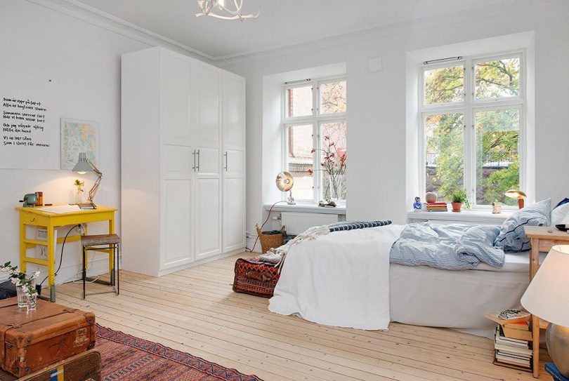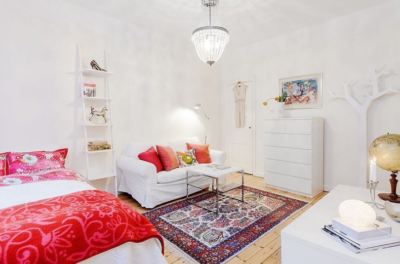 Одним из самых первых встает вопрос о расширении пространства комнаты. С этой целью рекомендуется большое внимание уделить цвету, стилю, освещению и другим моментам. Так, к примеру, белый цвет и любые светлые оттенки визуально делают помещение больше. Для солнечных квартир лучше подходят холодные тона светлого, для менее освещенных – теплые. В то же время важно не переусердствовать, иначе комната будет выглядеть не слишком уютной. Использование же насыщенных или темных оттенков лишь подчеркнет все недостатки малогабаритного помещения.