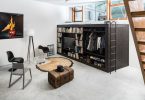 - перегородки с полками вместо стен из гипсокартона;