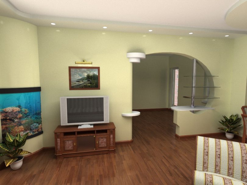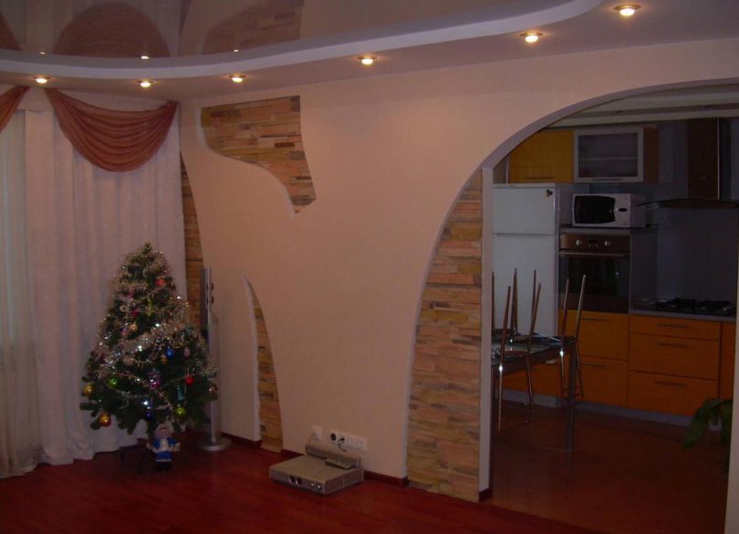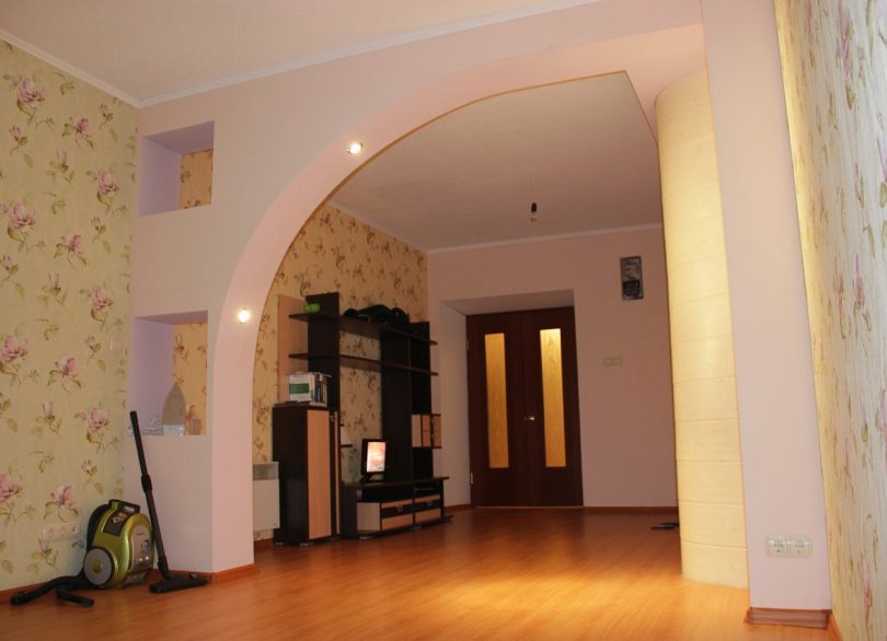 - Если планировка квартиры неудачная, то вы можете решить проблему, установив межкомнатные арки, фото, сделанные «до и после» такой перепланировки, очень впечатляют.