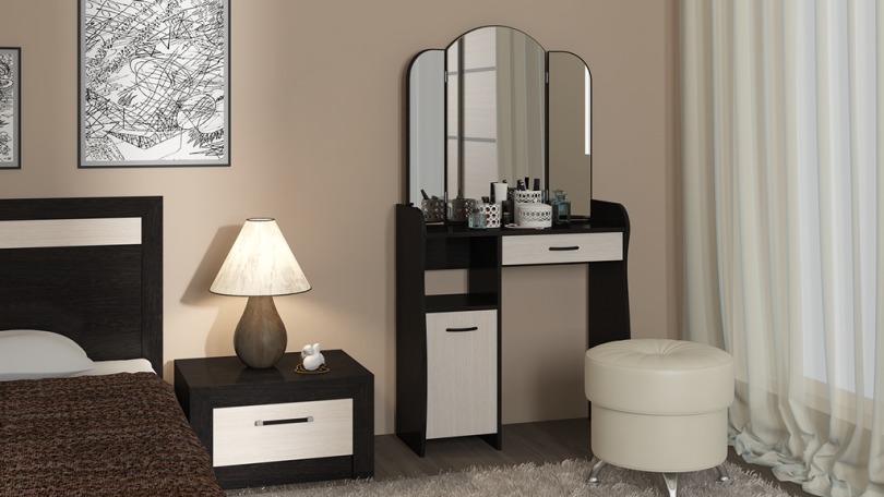 Выбирая столик в спальню с зеркалом, учитывайте сочетание стиля, цветовой гаммы и соотношение размеров.