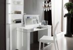 Можно поступить иначе – использовать многофункциональный стол туалетный с зеркалом на стене, с откидными крышками и множеством выдвижных ящичков, не контрастирующих с цветовой гаммой комнаты и самого столика. Бижутерию и прочие аксессуары необязательно хранить в ящиках – на стене можно прикрепить оригинальные подвески или крючки.