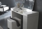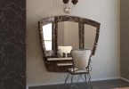 - Парфюмерный столик-консоль. Представляет собой узкую столешницу, которая чаще всего крепится к стене, как и зеркало. Наиболее подходящий вариант для маленьких помещений, а также любителям минимализма в интерьере.