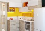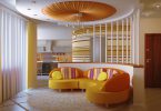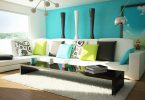 - Тандемы яркости. Яркие палитры необходимо грамотно комбинировать, чтобы комната не выглядела безвкусной. Выделять необходимо только функциональную зону. Остальное должно быть оформлено нейтрально. Например, можно обыграть кровать в спальне, диван в гостиной, зону приема пищи на кухне. Желтый, ярко-зеленый, голубой придадут дому свежести, позитива.