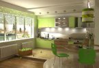 Зеленый — коварный цвет. Дизайнеры отмечают, что неправильное оформление комнаты зеленым может испортить всю картину, поэтому использовать с ним необходимо и другие краски. Лучше выбрать изумрудные, более натуральные оттенки и сочетать их с коричневым, древесным, молочным, кремовым. На кухне хорошо смотрится оливковая мебель, мелкие предметы.
