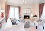 - Классика всегда в моде. Классический интерьер допускает использование как ярких красок, так и более приглушенных. Например, можно рассмотреть вариант нежно-розового и серого цвета. Серый — это фон, который занимает примерно 45% пространства. Объемные предметы оформляются ярко-розовым цветом, остальное — более спокойным тоном.