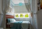 Цветовая палитра для узкого пространства следующая: пастельные сиреневые, голубые, светло-персиковые, серые, молочные оттенки.