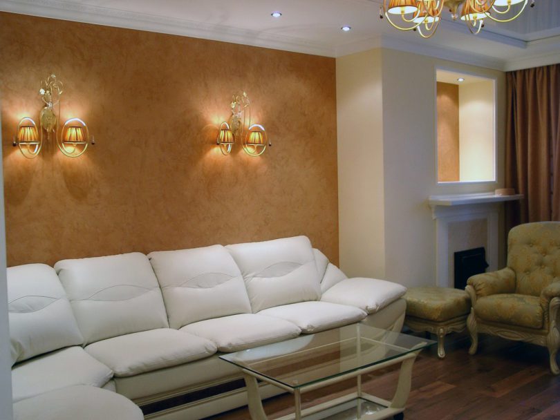Отделка стен декоративной штукатуркой выполняется на высохшей поверхности стены. Технология нанесения ее на основание практически одинаковая, а вот придание определенной текстуры производится множеством разных способов.