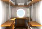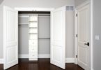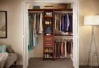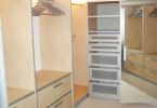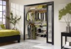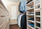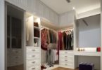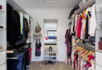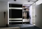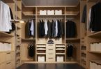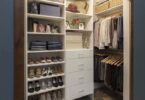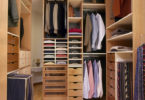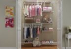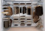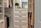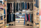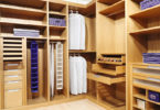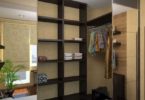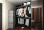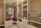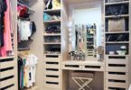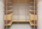 Для размещения вещей необходимо продумать расположение стеллажей и вешалок. Открытые полки — бюджетный вариант, но вещи будут пылиться. Закрытые — дороже, но это более надёжное хранилище. Кроме того, этот вариант сэкономить ваше время, ведь не нужно будет периодически перетереть всё от пыли.