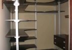 Существуют специальные современные конструкции для гардеробных — трансформирующиеся, на которых можно устанавливать полки, контейнеры или штанги для вешалок. А если позволяют средства, то можно купить приспособления для галстуков, шарфов и других мелочей. Удобный элемент для узкой кладовой — вращающиеся или выдвижные штанги для одежды, штангу можно вытянуть наружу и достать нужную вещь.