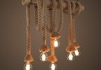 Оригинальный светильник можно сделать из сухой ветки необычной формы. Ее нужно очистить от коры и покрыть морилкой, затем, по желанию обработать прозрачным лаком. Ветку необходимо прикрепить к крючку на потолке при помощи обычной лески. Затем провод с лампой несколько раз накручиваю на ветку. Красиво смотрится ветвь, обвитая несколькими проводами.