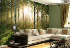 Два различных цвета помогут выделить несколько отдельных зон. То есть, стена может быть коричневой, а зелеными обоями дизайнер выделит лишь зону отдыха с диваном и журнальным столиком. Хорошо смотрятся не только однотонные обои, но и с рисунком. Изображения должны гармонировать на всех стенах, вне зависимости от цвета.