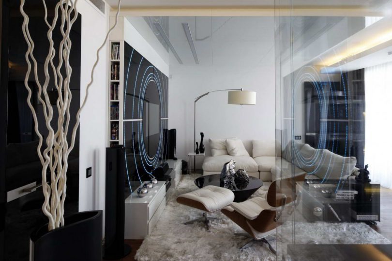 Некоторые решения в стиле хай-тек могут потребовать создания глянцевых, блестящих и гладких или даже хромированных и металлических поверхностей — это почти всегда обязательный компонент.