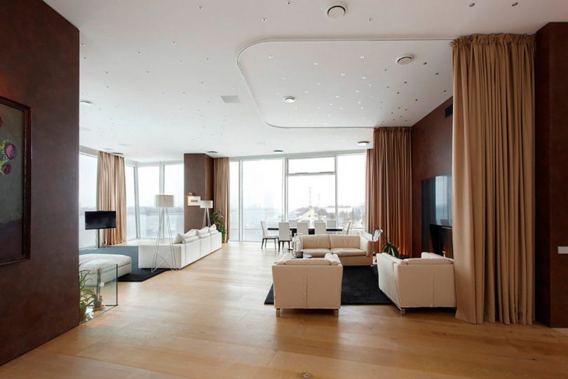 Сразу можно ощутить, что современный дизайн квартиры опирается на критичный, смелый минимализм.